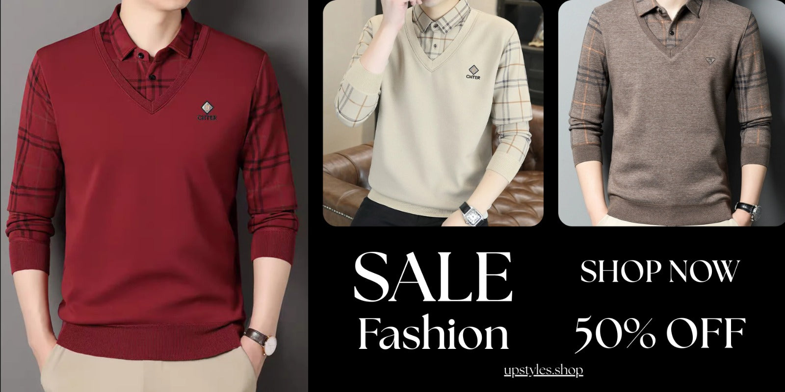 Premium V-Neck Sweater with Collar Shirt – Winter Warm Knit Pullover