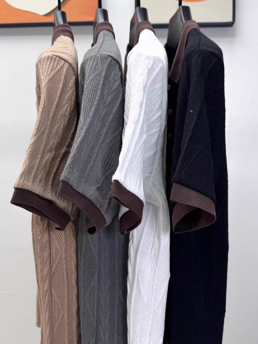 Textured Knit Polo Shirt – Contrast Collar Embroidered Short Sleeve Top